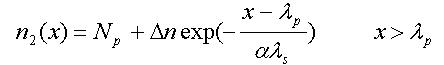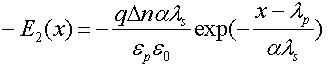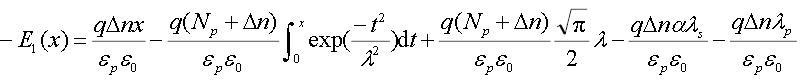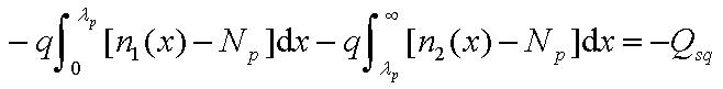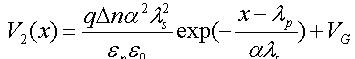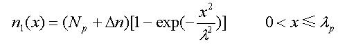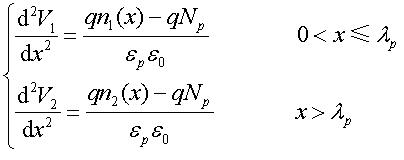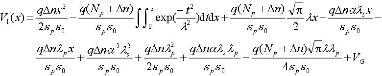 本文采用電子分布曲線擬合近似,設多晶矽/二氧化矽界麵處為0=x點,向上為正,峰值處的點的坐標為,分別用以下分布來近似上升和下降階段的載流子分布: