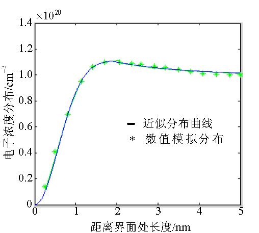 圖2 電子分布的數值模擬與近似分布曲線