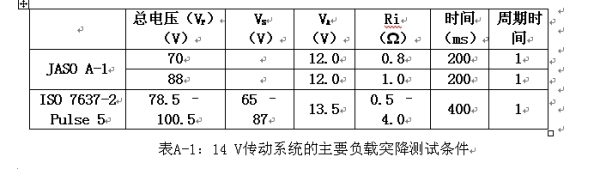 表1是用於14 V傳動係統的美國的ISO-7637-2 Pulse 5和日本的JASO A-1測試的仿真。兩項測試的電壓波形如圖A-4a所示。
