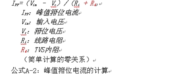 對ISO-7637-2測試條件來說,標準條件為65 V至87 V的VS範圍,Ri(線路電阻)的範圍為0.5 Ω至4 Ω。一些汽車製造商為基於ISO-7637-2 Pulse 5的負載突降測試規定了不同的條件。負載突降TVS的峰值箝位電流是由以下公式A-1計算出來的: