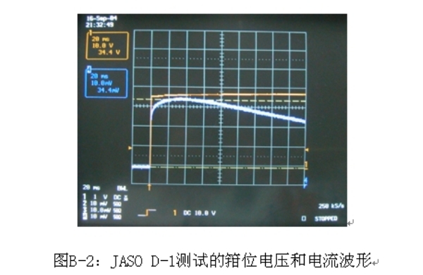 圖B-2:JASO D-1測試的箝位電壓和電流波形