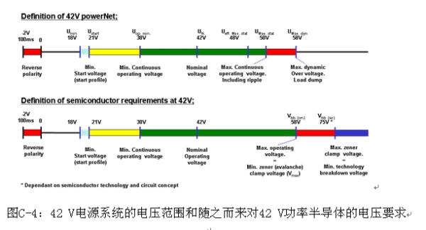 在長期無視和仍在爭論汽車采用42 V左右的係統的運行安全和穩定性的時候,最近一些中型混合動力汽車使用了42 V電源總線和發電機。42 V電源係統的基本概念是實現比12 V電源係統更高的功率效率和減輕汽車中電力線束的重量。這種新型42 V電源係統對半導體元件的影響在於比12 V係統需要高得多的絕緣強度。