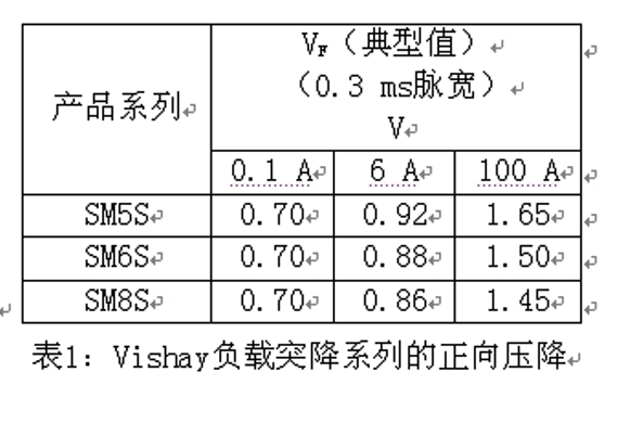 Vishay負載突降係列可以滿足上述所有條件,第一個條件是整流器的基本功能,第二個條件是通過表1滿足的。Vishay負載突降係列的正向壓降在100 A電流條件下低於1.7 V。第三個條件取決於保險絲類型和額定值。