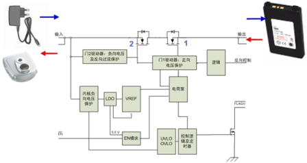 移動設備的直接充電通道麵臨著浪湧電流效應和正/負fu向xiang過guo壓ya等deng風feng險xian。適shi配pei器qi熱re插cha入ru的de瞬shun間jian,由you於yu線xian纜lan的de寄ji生sheng電dian感gan和he輸shu入ru電dian容rong的de緣yuan故gu,危wei險xian的de高gao壓ya振zhen鈴ling可ke能neng會hui損sun害hai移yi動dong設she備bei中zhong敏min感gan的de集ji成cheng電dian路lu(IC)。在這方麵,設想的移動設備保護方案應可通過控製保護方案內的MOSFET的導通,使移動設備輸入電流和輸入電壓不超過IC所能承受的電壓值,從而保護移動設備免於源自各種應用環境下可能存在的過壓故障的損害,如由適配器內部故障產生的正向過壓、適配器插反產生的負向過壓等。