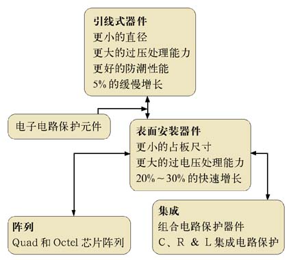 ---電(dian)路(lu)保(bao)護(hu)元(yuan)件(jian)的(de)變(bian)化(hua)還(hai)表(biao)現(xian)在(zai)結(jie)構(gou)方(fang)麵(mian),其(qi)中(zhong)一(yi)個(ge)顯(xian)著(zhu)的(de)變(bian)化(hua)是(shi)從(cong)傳(chuan)統(tong)的(de)引(yin)線(xian)式(shi)元(yuan)件(jian)向(xiang)表(biao)麵(mian)安(an)裝(zhuang)設(she)計(ji)的(de)轉(zhuan)變(bian),尤(you)其(qi)是(shi)向(xiang)多(duo)層(ceng)技(ji)術(shu)的(de)演(yan)變(bian)。