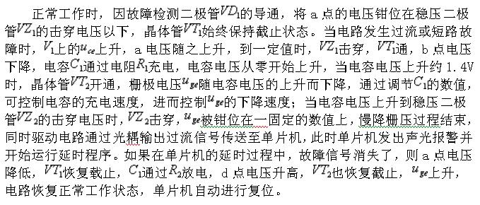 這與傳統的簡單限流或直接關閉IGBT的控製方式有本質的區別,它是利用單片機的智能性改變其工作方式來保護IGBT的安全,從而可靠的保證IGBT的安全。