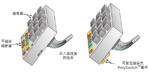 此ci外wai,通tong過guo把ba保bao護hu器qi件jian靠kao近jin連lian接jie器qi擺bai放fang,可ke以yi縮suo短duan軌gui跡ji長chang度du,接jie線xian箱xiang外wai觀guan尺chi寸cun也ye可ke以yi縮suo小xiao。也ye可ke以yi選xuan擇ze把ba接jie線xian箱xiang分fen成cheng若ruo幹gan較jiao小xiao的de單dan元yuan,並bing圍wei繞rao車che身shen重zhong新xin選xuan擇ze它ta們men的de位wei置zhi,而er不bu用yong考kao慮lv是shi否fou便bian於yu用yong戶hu接jie近jin。在zai這zhe種zhong情qing況kuang下xia,PolySwitch器件可以幫助設計人員實現能更加嚴格地反映優化的樹形結構及其伴隨效益的電氣結構。