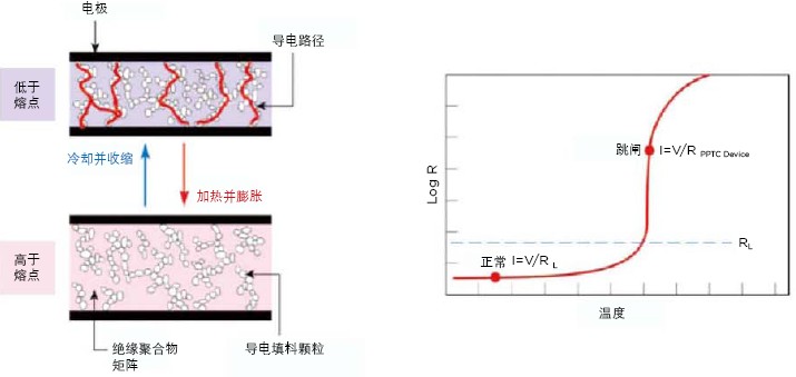圖4. PolySwitch通過從低阻狀態轉變為高阻狀態來響應過流或過溫條件,幫助保護電路