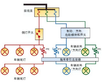 通過使用分散式架構,當發生短路或過載時,由PolySwitch器件對車輛布線進行保護。當拖車與電源斷開後,PolySwitch器件會自動複位。與傳統電路保護手段不同,在發生瞬時過載時,這種設計不需要司機找出、更換燒毀的熔斷器。