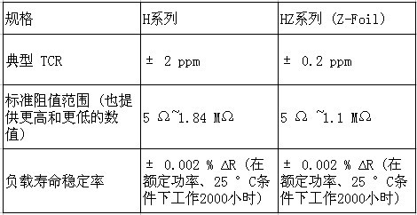 H/HZ係列:Vishay新一代超高精度Bulk Metal®箔電阻