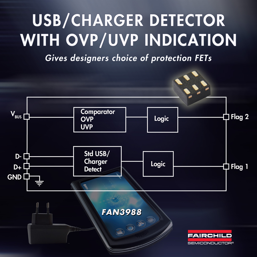 飛兆半導體推出帶USB/充電器檢測功能的便攜應用過電壓保護器件