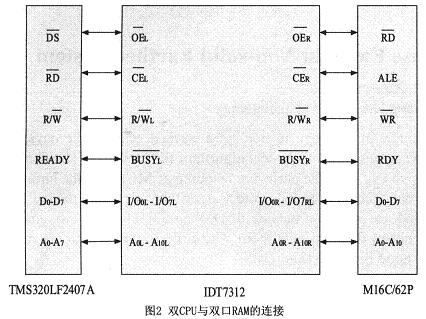 由於係統采用雙CPU,為了實現兩個CPU之間大量數據的快速交換,本裝置采用雙口RAM來實現兩CPU之間快速的數據交換。
