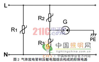 - 氣體放電管和壓敏電阻組合構成的抑製電路原理