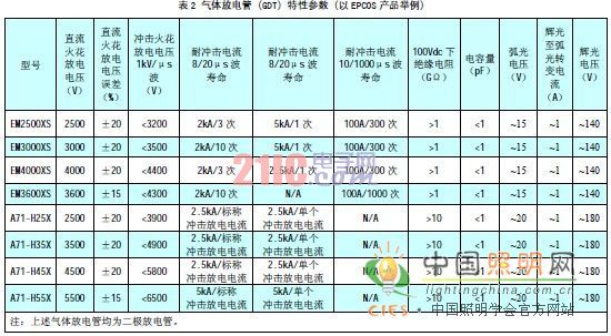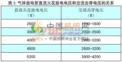 為了使LED路lu燈deng能neng夠gou滿man足zu安an全quan要yao求qiu,氣qi體ti放fang電dian管guan的de耐nai壓ya選xuan擇ze至zhi關guan重zhong要yao,應ying該gai選xuan取qu足zu夠gou耐nai壓ya的de氣qi體ti放fang電dian管guan與yu壓ya敏min電dian阻zu配pei套tao,壓ya敏min電dian阻zu和he氣qi體ti放fang電dian管guan串chuan聯lian電dian路lu(如圖1)應能夠承受基本絕緣的耐壓。幾種氣體放電管的直流火花放電電壓和交流擊穿電壓的關係見表3,氣體放電管的直流火花放電電壓一般應選不低於2500V。