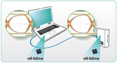 如果放在接收器之前,轉接驅動器可以有效打開信號眼圖的開口,從而將信號質量恢複到可以接收的範圍內。轉接驅動器可以調節信號、使shi用yong信xin號hao均jun衡heng的de功gong能neng減jian少shao信xin號hao衰shuai減jian和he抖dou動dong,因yin此ci可ke以yi在zai更geng長chang的de距ju離li和he通tong過guo多duo個ge連lian接jie器qi的de情qing況kuang下xia提ti供gong幹gan淨jing的de信xin號hao傳chuan送song通tong道dao。信xin號hao可ke以yi恢hui複fu原yuan有you的de強qiang度du再zai次ci傳chuan送song,就jiu像xiang是shi將jiang信xin號hao通tong道dao拆chai成cheng數shu個ge段duan落luo,並bing且qie在zai每mei個ge段duan落luo恢hui複fu信xin號hao的de質zhi量liang。轉zhuan接jie驅qu動dong器qi也ye允yun許xu產chan品pin設she計ji師shi依yi照zhao特te定ding的de應ying用yong類lei型xing調tiao整zheng最zui佳jia的de信xin號hao均jun衡heng效xiao果guo,因yin此ci可ke以yi確que保bao設she備bei可ke以yi通tong過guo最zui嚴yan格ge的deUSB3.0認證要求。