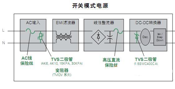 AC線保險絲選用464係列,它提供了最小化、快速響應的表麵貼裝型250VAC保險絲,符合IEC60127-4標準,464特別針對電源和照明係統設計應用而設計。