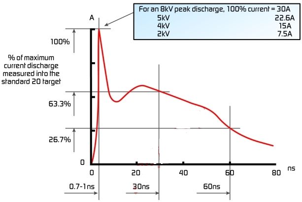 圖1、ESD發生器模擬的典型8KV的ESD脈衝。