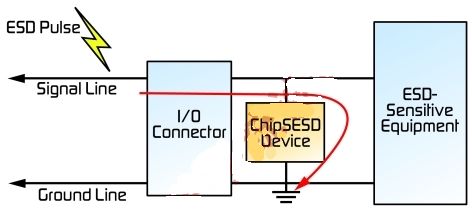 基於國際標準IEC61000-4-2,大多數的電子設備必須滿足抵禦最低8kV的接觸放電或者15kV的de空kong氣qi放fang電dian。不bu幸xing的de是shi,許xu多duo半ban導dao體ti器qi件jian無wu法fa承cheng受shou這zhe一yi級ji別bie的de靜jing電dian衝chong擊ji,並bing可ke能neng會hui造zao成cheng永yong久jiu性xing損sun壞huai。為wei了le提ti高gao其qi生sheng存cun能neng力li,係xi統tong中zhong必bi須xu設she計ji芯xin片pian外wai的de額e外wai保bao護hu電dian路lu。