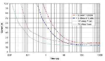 圖8:采用保護算法的外推i2-t曲線與電線和熔斷器比較