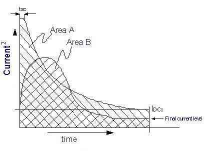 可能存在一種特殊的瞬間過流狀況:瞬間過流超出曲線與A區交接的界限,但是“曲線下麵積”不足以產生錯誤開關條件。在下圖中(圖6),這個錯誤是很嚴重的,但是因為時長太短,不足以產生錯誤開關條件。