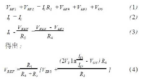 從式(4)中可以看出2 ln ( IS3 / IS2 ) VT相對於ln( IS3 / IS2 )VT受失調電壓VOS的影響明顯減少,即級連二極管的采用使基準電壓受運放失調影響減少。