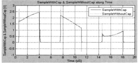 在比較電壓產生器輸出端應加上電容Ccompare,以消除由於開關管導通的瞬間在Ccompare端產生的尖峰電壓,仿真結果如圖7 所示,其中虛/ 實線分別為有無電容存在時的仿真結果。顯然,電容Ccompare的存在極大地改善了輸出波形。電容Ccompare大小的選擇,應該權衡消峰效果、充電速度和芯片麵積消耗間關係。