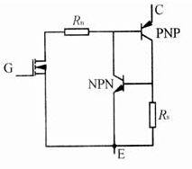 2)超出關斷安全工作區引起擎住效應而損壞擎住效應分靜態擎住效應和動態擎住效應。IGBT為PNPN4層結構,其等效電路如圖1所示。體內存在一個寄生晶閘管,在NPN晶體管的基極與發射極之間並有一個體區擴展電阻Rs,P型體內的橫向空穴電流在Rs上會產生一定的電壓降,對NPN基極來說,相當於一個正向偏置電壓。在規定的集電極電流範圍內,這個正偏置電壓不大,對NPN晶體管不起任何作用。當集電極電流增大到一定程度時,該正向電壓足以使NPN晶體管開通,進而使NPN和PNP晶體管處於飽和狀態。於是,寄生晶閘管導通,門極失去控製作用,形成自鎖現象,這就是所謂的靜態擎住效應。IGBT發生擎住效應後,集電極電流增大,產生過高功耗,導致器件失效。動態擎住效應主要是在器件高速關斷時電流下降太快,dvCE/dt很大,引起較大位移電流,流過Rs,產生足以使NPN晶體管開通的正向偏置電壓,造成寄生晶閘管自鎖[2]。