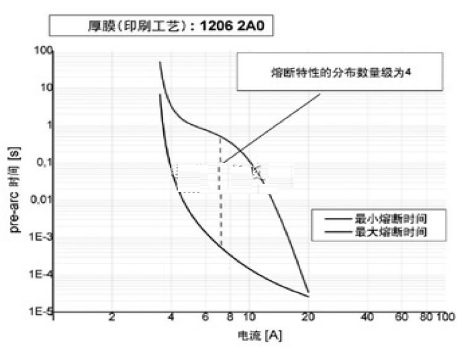zaishejijieduan,dianzigongchengshihuipengdaorongduantexingdafubianhuadeqingkuang。yibanlaishuo,tiepianshibaoxiansishidizuzhidedianzu,qizuzhizhiyoujioumu。rushangsuoshu,rongrongtexingyudianzuzhiyouguan。ruguodianzuzhidebianhuafanweihenda,rongrongtexingyejiuxiangyingdiyouhendabianhua。youyuzhezhongkenengfashengdebianhua,tiepianshibaoxiansizaipengdaozhengchangdeyongliushijiuduankai,huoshixiangfan,zaiguozaiqingkuangxia,yinggaiduankaishiquebuduankai,zhezhongzuizaogaodeqingxingshigongchengshibixubimiande。tu3所示為印刷厚膜保險絲的熔斷特性典型分布。