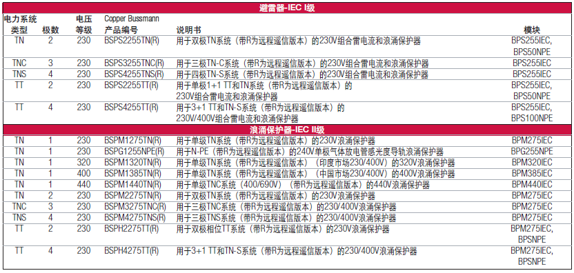 - Cooper Bussmann用於所有IEC應用的高性能防雷和浪湧保護產品