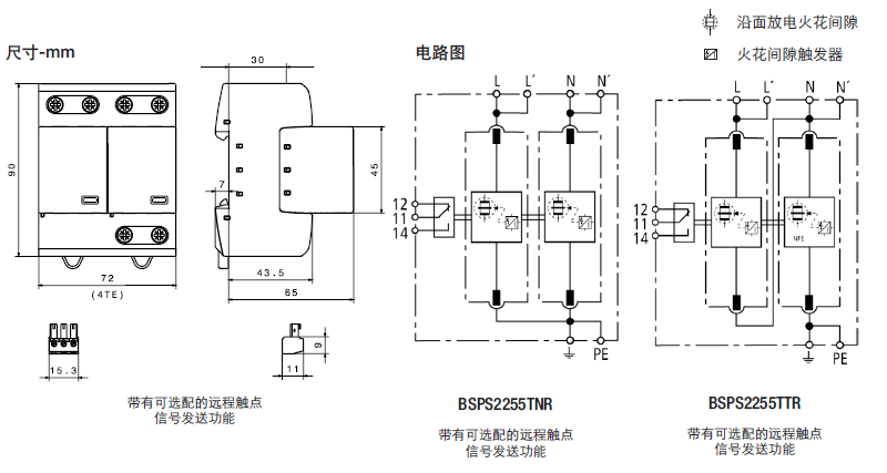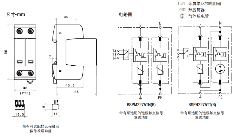 這種雙極設備的特點是,在TN係統中作為一種結合了避雷器和浪湧保護器的模塊使用(“2-0”電路)。