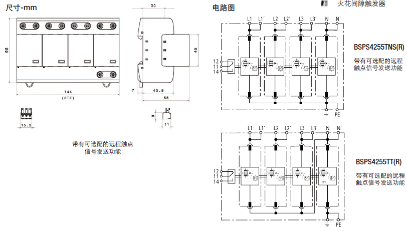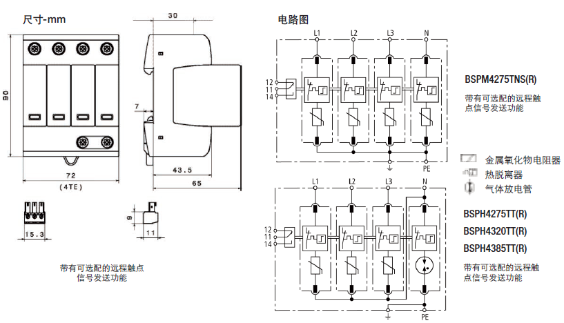 這種四極設備的特點是,用於TNS 230/400V係統("4-0"電路)中防止浪湧。