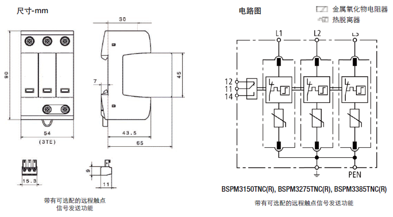 這種三極設備的特點是,用於TN-C 230/400V係統("3-0"電路)中防止浪湧。