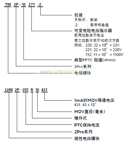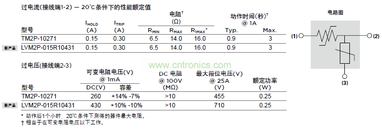 泰科電子(TE)2Pro器件是集成過電流和過壓保護的模塊,符合RoHS標準。在一個器件中集成PolySwitch PPTC(聚合物正溫度係數熱敏電阻)和金屬氧化物壓敏技術,從而減少電路板空間需求和器件數。
