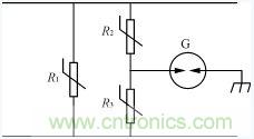 圖4是氣體放電管和壓敏電阻組合構成的浪湧抑製電路。由於壓敏電阻有一致命缺點:具ju有you不bu穩wen定ding的de漏lou電dian流liu,性xing能neng較jiao差cha的de壓ya敏min電dian阻zu使shi用yong一yi段duan時shi間jian後hou,因yin漏lou電dian流liu變bian大da可ke能neng會hui發fa熱re自zi爆bao。為wei解jie決jue這zhe一yi問wen題ti在zai壓ya敏min電dian阻zu之zhi間jian串chuan入ru氣qi體ti放fang電dian管guan。但dan這zhe又you帶dai來lai了le缺que點dian就jiu是shi反fan應ying時shi間jian為wei各ge器qi件jian的de反fan應ying時shi間jian之zhi和he。例li如ru壓ya敏min電dian阻zu的de反fan應ying時shi間jian為wei25ns,氣體放電管的反應時間為100ns,則圖4的R2,G,R3的反應時間為150ns,為改善反應時間加入R1壓敏電阻,這樣可使反應時間為25ns。