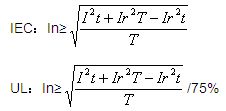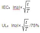 如果保險絲通以一定的電流(Ix)可以永久工作,那麼此時保險絲的聚熱與散熱一定處於平衡狀態,此時保險絲的散熱功率為Ix2T。如果尖峰電流產生的能量≤Ix2T,可以認為尖峰電流產生的能量不可能使保險絲的溫升大於Ix時的溫升。對於滿足不同的安規體係,Ix的數值有所區別,IEC體係下可以認為等於In;UL體係下可以認為等於75%In。