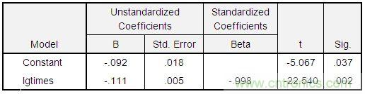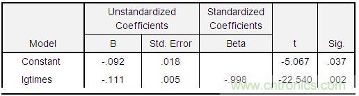 lg(ratio) = -0.092 – 0.111*lg(times),通過t檢驗,此方程關係非常顯著,如下表。