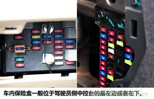 一般一輛車擁有兩個保險盒,一個位於發動機艙內,負責汽車外部用電器的保險絲,如發動機控製單元、喇叭、玻璃清洗器、ABS、大燈等;另一個在駕駛員左側附近,管理著車內的用電器,例如車窗升降器、安全氣囊、電動座椅、點煙器等。