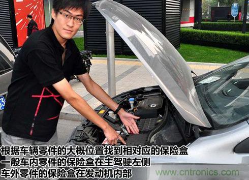 按保險盒蓋子內的保險絲對照表我們可以查找到我們要找的保險絲位置。