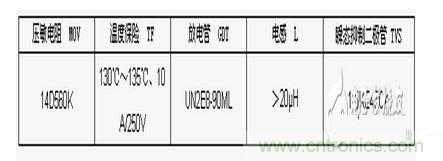 元件選擇:壓敏電阻 MOV溫度保險 TF放電管 GDT電感 L瞬態抑製二極管 TVS14D