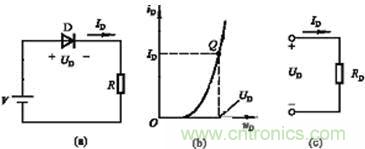 圖(a)電路(b)二極管伏安特性和工作點Q(c)二極管的直流電阻