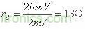 ID為靜態電流,常溫下UT=26mV。可知,靜態電流ID越大,rd將越小。設UD=0.7V時,ID=2mA。由此可得直流電阻RD=350,而動態電阻(交流電阻)