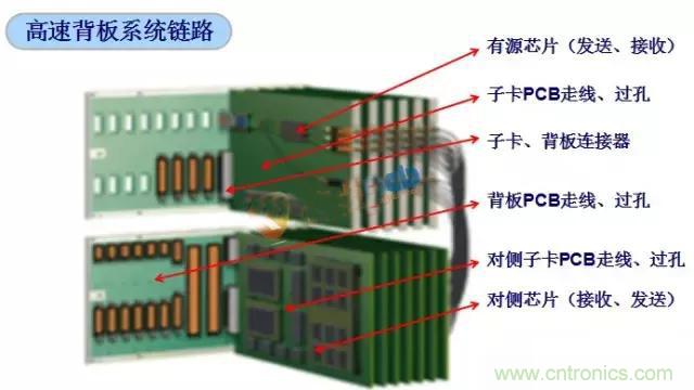 高速背板的設計除了關注背板PCBA設計要素以外,需要關注整個係統高速信號互連鏈路的設計,典型的高速信號鏈路參考下圖: