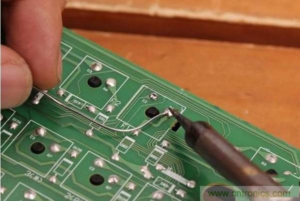 以上所說其實都是電子元器件的問題,當然,既然PCB電路板作為元器件的落腳點,那麼電路板故障肯定也是存在的,最簡單的例子就死鍍錫部位,因製作工藝原因,在PCB腐蝕過程中,有可能會出現斷線問題。遇到這種情況,如果無法補線,那麼隻能用細銅絲飛線解決。