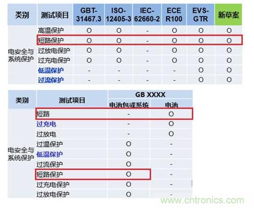 表2.現有國內外標準和未來GB此項功能試驗內容分配