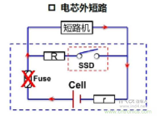 電芯層麵設計Fuse:每個Cell的內部設計一個Fuse,在短路瞬間,斷開電流回路,起到短路保護的作用。
