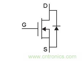 圖1所示是一個N溝道功率MOSFET的典型符號。本征體漏二極管由p-body和n-drift兩個區組成,如圖1所示,體漏二極管與MOSFET的導電溝道並聯。