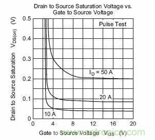 2、MOS管導通特性導通的意思是作為開關,相當於開關閉合。NMOS的特性,Vgs大於一定的值就會導通,適合用於源極接地時的情況(低端驅動),隻要柵極電壓達到4V或10V就可以了。PMOS的特性,Vgs小於一定的值就會導通,使用與源極接VCC時的情況(高端驅動)。但是,雖然PMOS可以很方便地用作高端驅動,但由於導通電阻大,價格貴,替換種類少等原因,在高端驅動中,通常還是使用NMOS。右圖是瑞薩2SK3418的Vgs電壓和Vds電壓的關係圖。可以看出小電流時,Vgs達到4V,DS間壓降已經很小,可以認為導通。