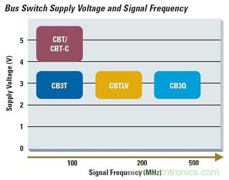 3個係列支持3.3V運行,但隻有其中一款器件能夠處理200MHz以上的頻率:那就是CB3Q。在TI.com內快速搜索可以得到這一係列中可以提供的18款產品的列表,針對你的應用,推薦使用SN74CB3Q3125,這是因為這款器件能夠切換4條數據線路。