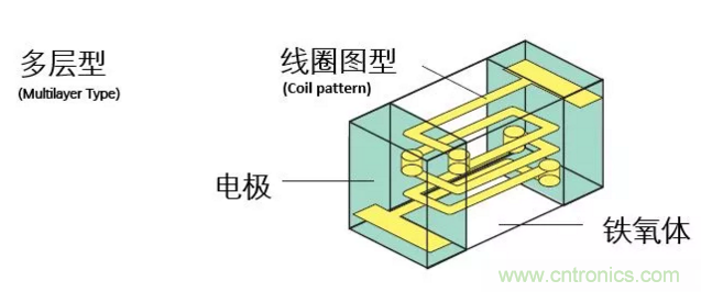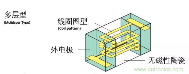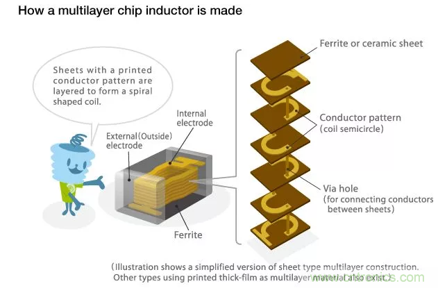 多層片狀電感的製作工藝:將鐵氧體或陶瓷漿料幹燥成型,交替印刷導電漿料,最後疊層、燒結成一體化結構(Monolithic)。