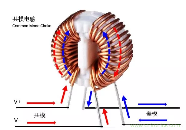 換一個方式理解:當V+上流過一個頻率的共模幹擾,形成的交變磁場,會在另一個線圈上形成一個感應電流,根據左手定則,感應電流的方向與V-上共模幹擾的方向相反,就抵消了一部分,減小了共模幹擾。